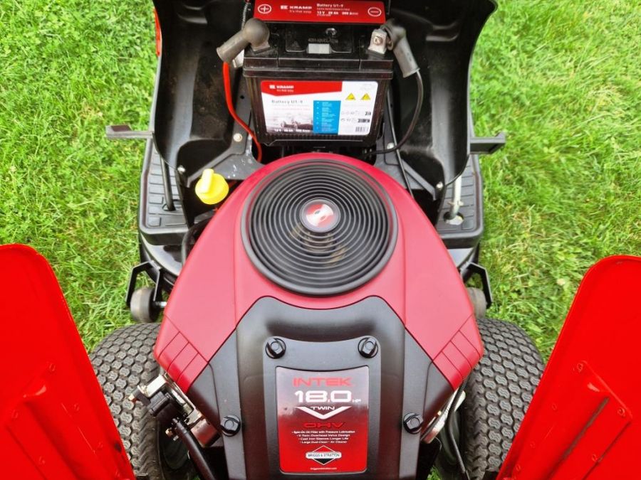 Zahradní traktor KARSIT 17,5HP 102cm prodám zahradní traktor po celkové GO motor Briggs Stratton 18HP 2V INTEK záběr 102cm, 2 nože Objem nádrže 12 litrů Startování elektrické Systém sečení 2 nože, protiběžné Pracovní záběr 102 cm Výška sečení 2,5 - 10 cm Materiál šasi ocelový plech Řízení mechanické, přední náprava - litina Převodovka hydrostatická Brzda provozní i parkovací Objem vaku 300 litrů Vyprázd. koše mechanické Ložiska kol ANO - valivá Pneu přední 16 x 6,5 - 8 Pneu zadní 20 x 10 - 8 Závěs ANO Počítadlo motohodin ANO Hmotnost 245 kg Horní Čermná 561 56