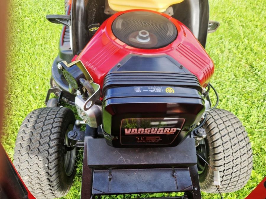 motor Briggs Stratton 16HP, 2 válce klouby pro řízení ložiska v kolech litinová náprava hydrostatická převodovka = plynulý pojezd elektromagnetické spouštění nožů (elektrickým vypínačem) záběr sečení 102cm, 2 nože nové řemeny, kladky, nože, ložiska, olej, filtr atd. traktůrek je připraven na práci servis nebo náhradní díly zajištěny prodej se zárukou Horní Čermná 561 56